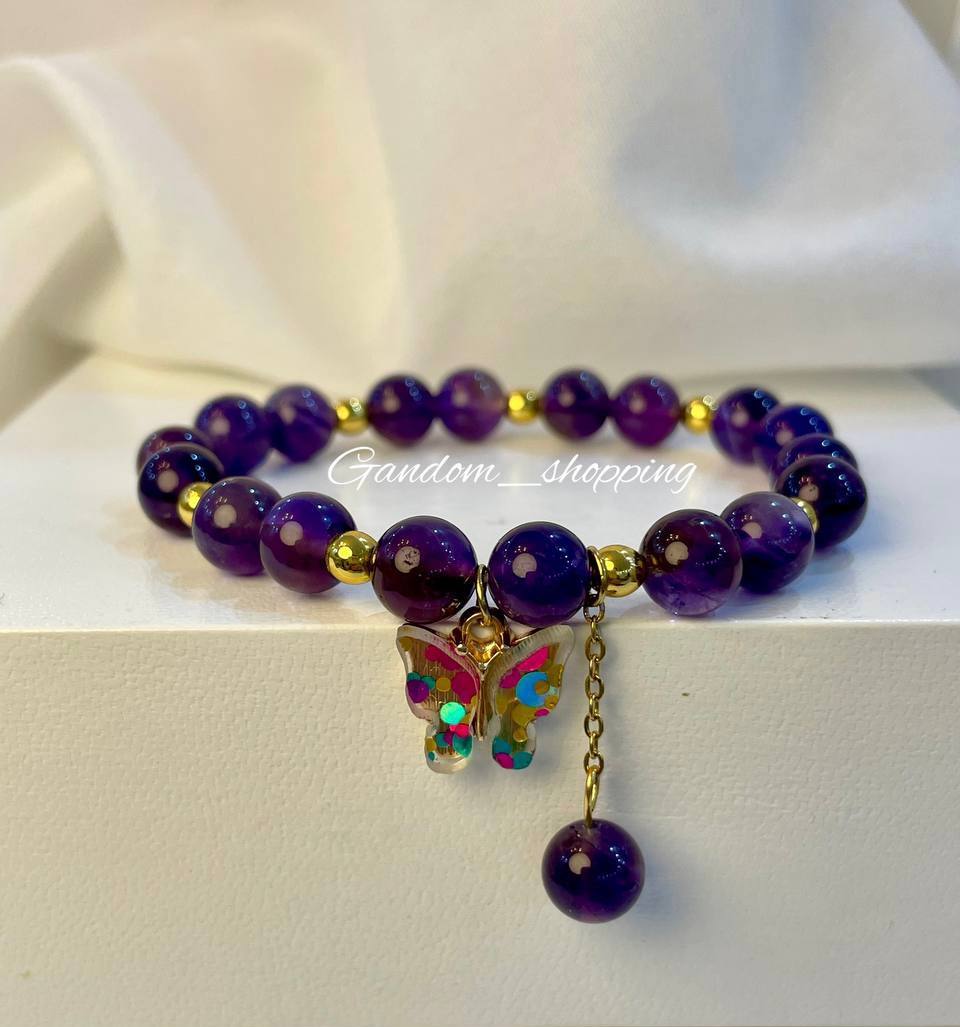 دستبند آمیتیست با آویز پروانه