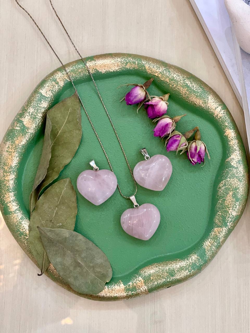 آویز قلبی رز کوارتز (سنگ عشق)
