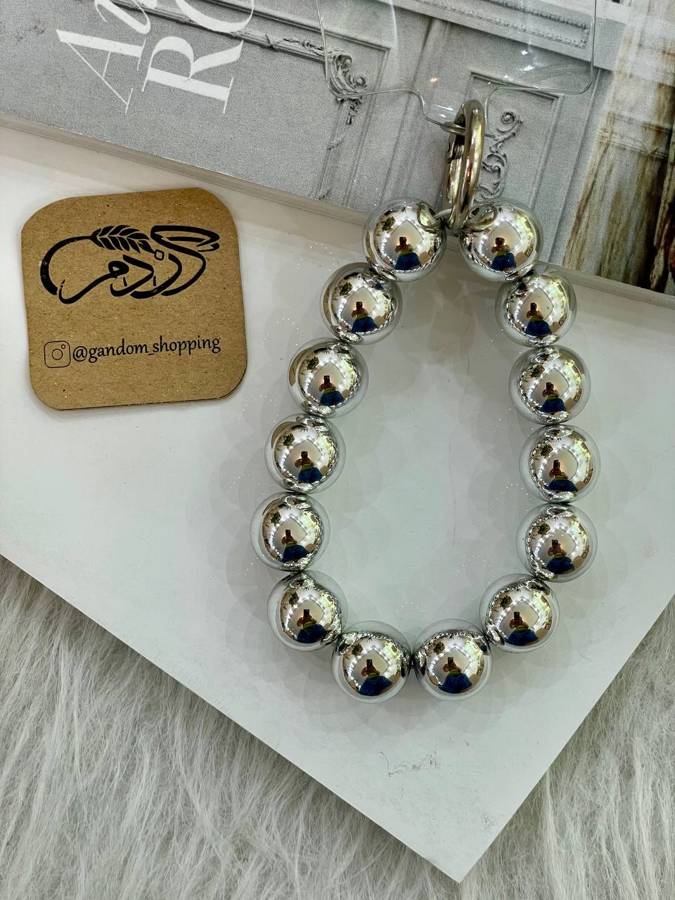 آویز دستبندی مروارید بزرگ نقره ای