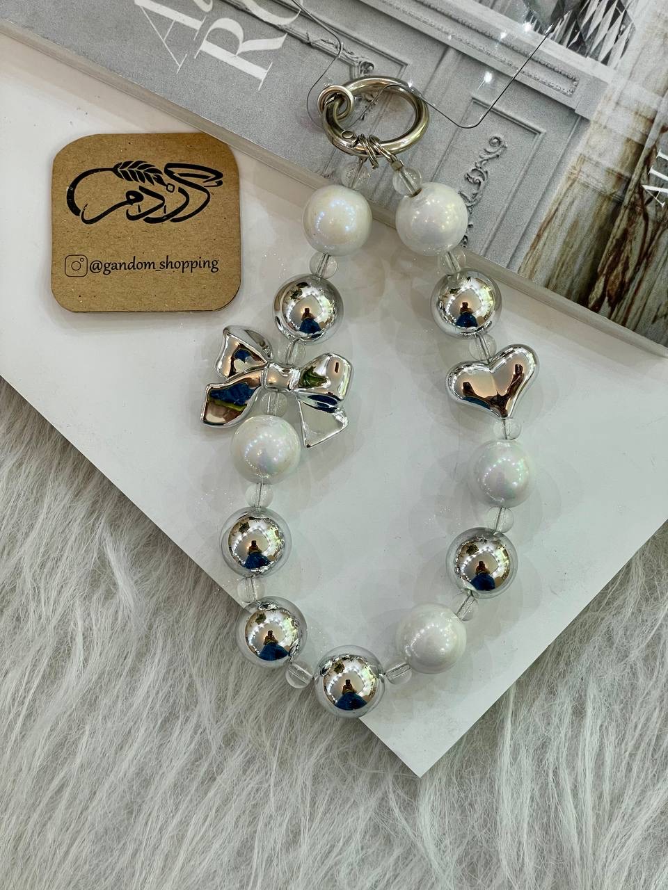آویز دستبندی مروارید بزرگ سفید